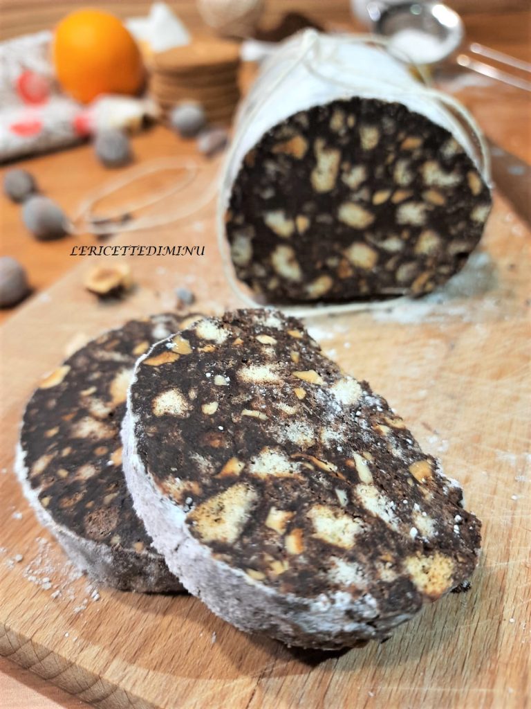 • Die Schokoladensalami ohne Eier und ohne Likör ist jetzt bereit, genossen zu werden.