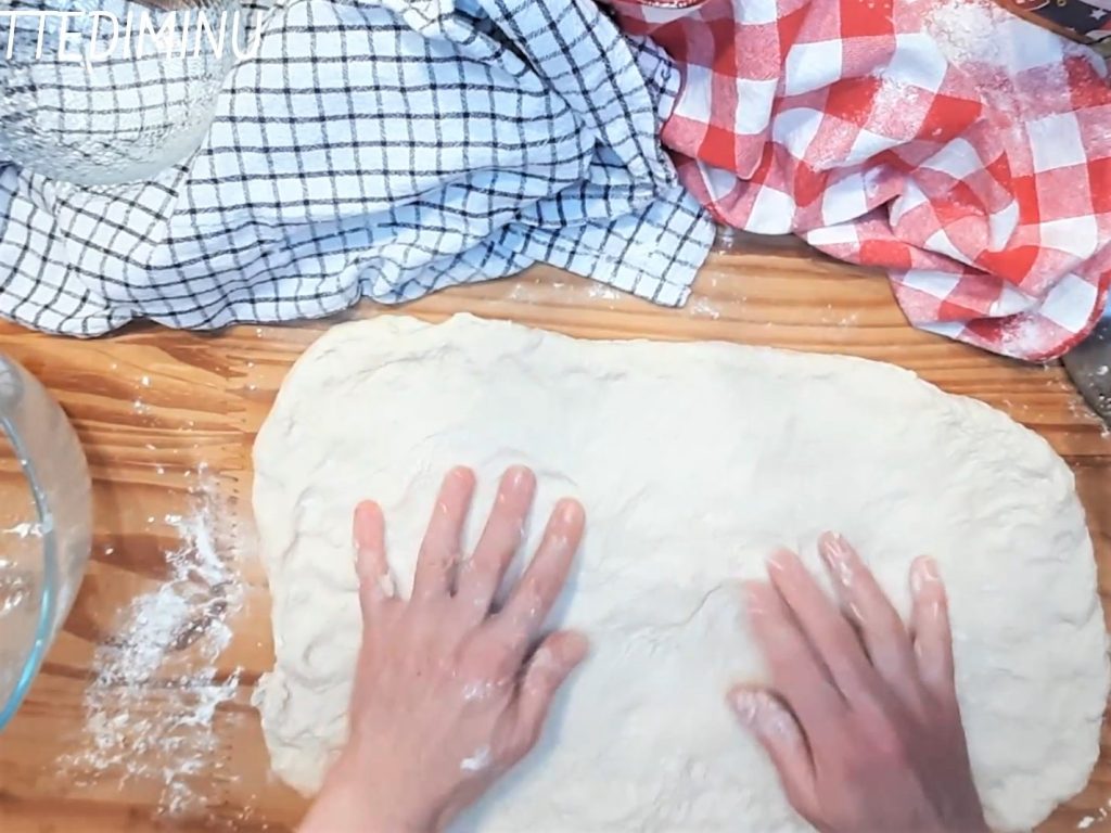 Weiter kneten, bis der Teig glatt ist, und insgesamt mindestens 10/15 Minuten lang.