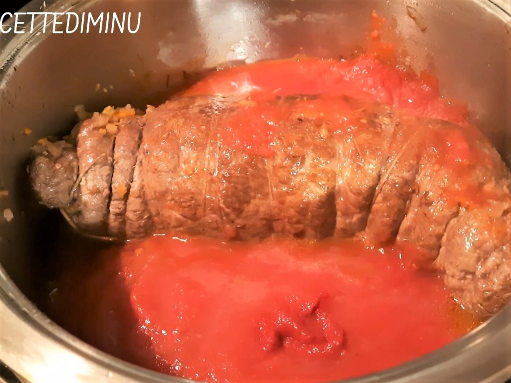 In der letzten halben Stunde können auch Fleischbällchen in die Sauce hinzugefügt werden, die zuvor im selben Öl angebraten wurden, in dem wir den Falsomagro versiegelt hatten.