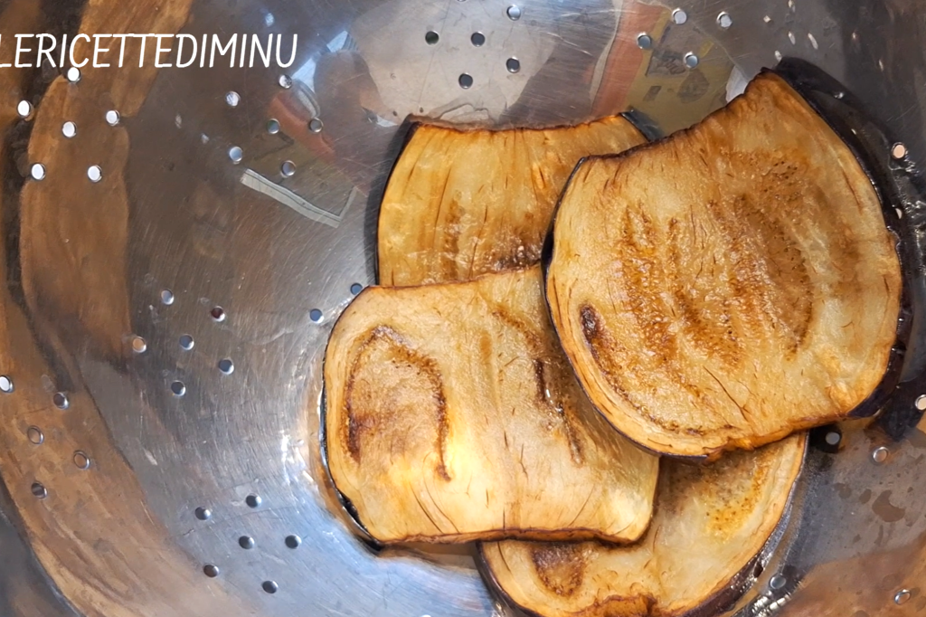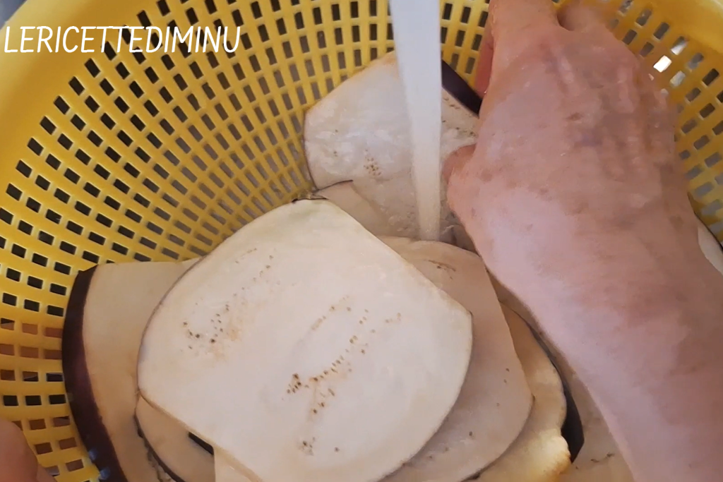 Nicht zu lange stehen lassen, um zu vermeiden, dass die Auberginenscheiben zu viel Salz aufnehmen.