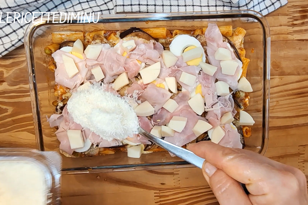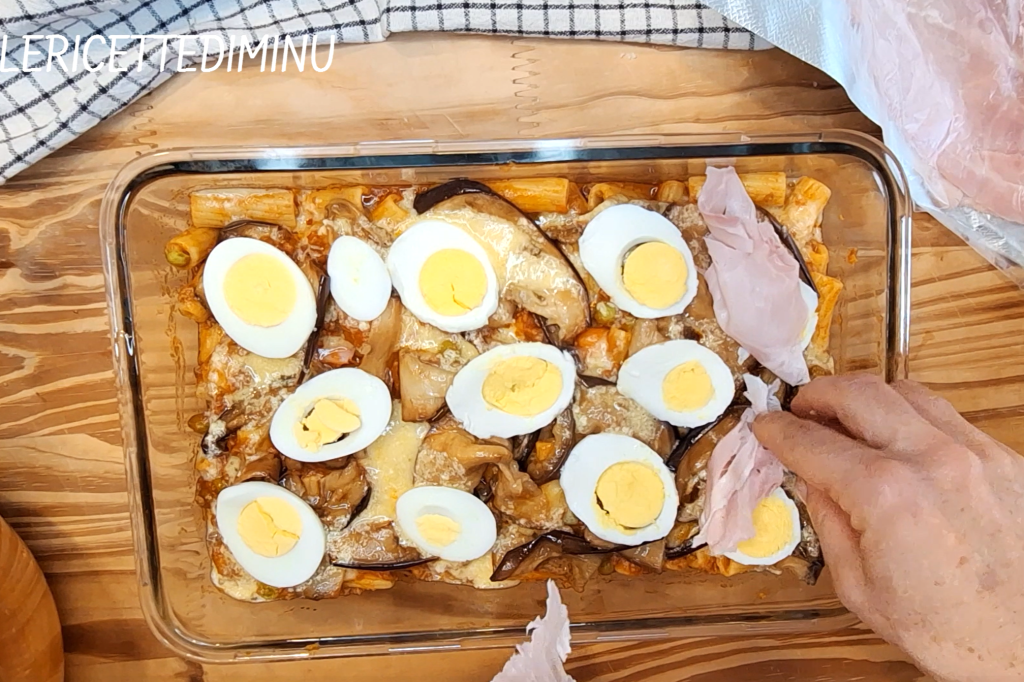 Hergestellt aus schmackhaften Zutaten, erfreut sie sowohl Groß als auch Klein: Die Pasta wird mit einem guten Ragù mit Erbsen gewürzt, dann bereichern Käse, Eier, Schinken und gebratene Auberginen das Gericht noch mehr.
