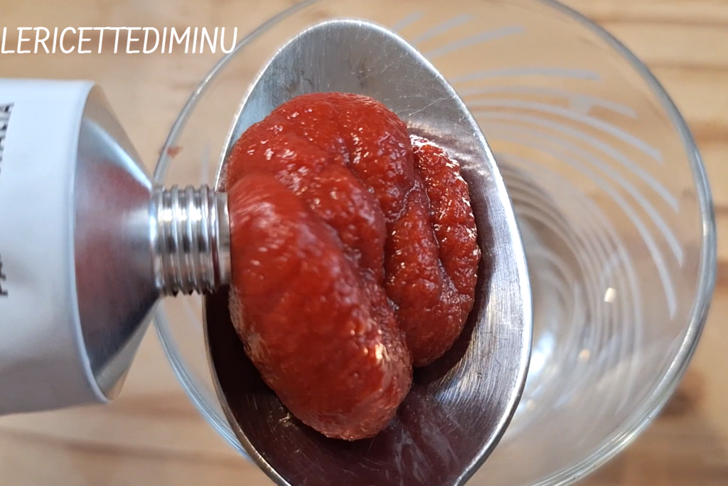 Die Tomatenpassata und einen Liter Wasser hinzufügen, zwei Lorbeerblätter, einen Esslöffel Tomatenmark, der in etwas heißem Wasser aufgelöst wurde.