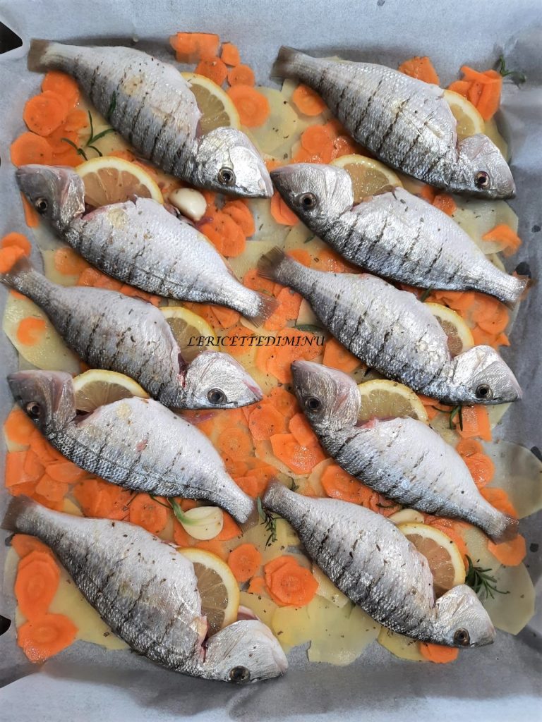 Die Streifenbrassen oder Aiole im Ofen mit Kartoffeln und Karotten ist ein sehr leckeres und delikates Hauptgericht, das diesen edlen Fisch in den Vordergrund stellt.