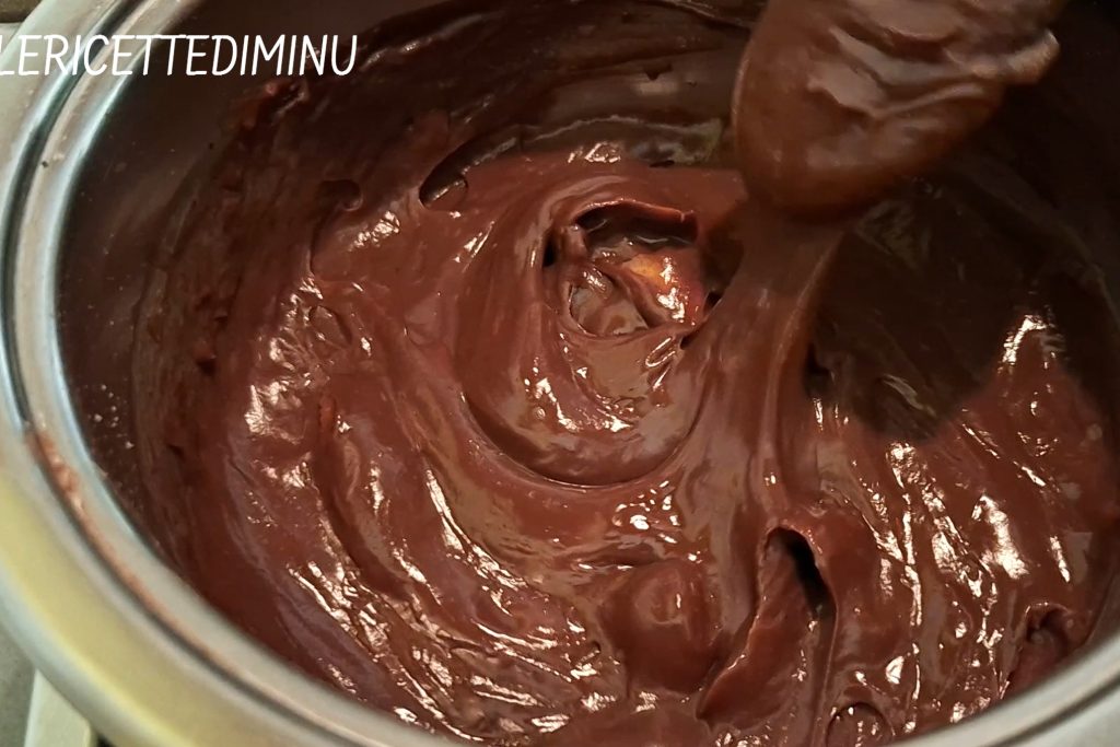 Die Füllung besteht aus köstlichen Tupfen Schokoladencreme aus Kakao und Zartbitterschokolade, deren Konsistenz hervorragend zur Weichheit des Bodens passt.