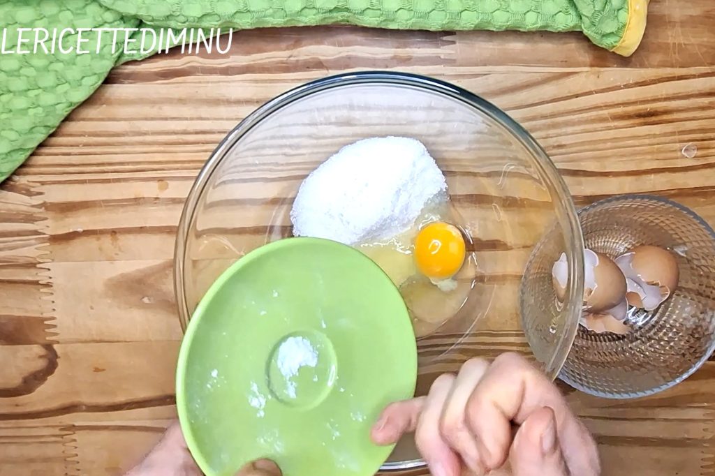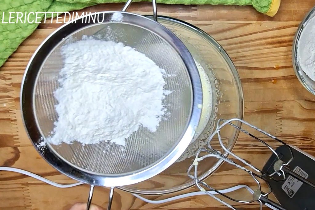 • Nach und nach hinzufügen das gesiebte Mehl und das Backpulver.