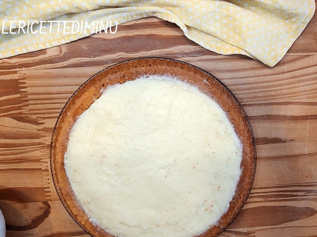 Verteilen Sie die Creme auf dem Kuchen und glätten Sie sie.