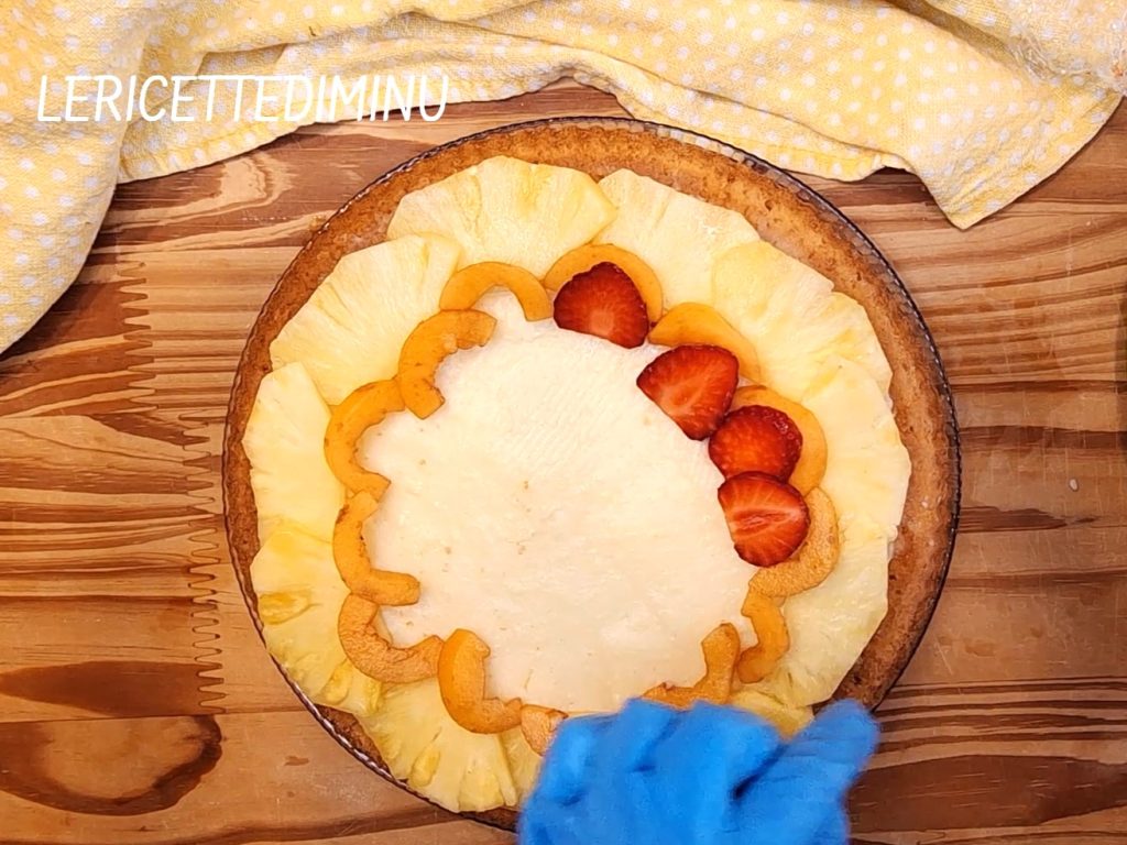 Für dieses Dessert habe ich frisches Obst verwendet, also Ananas, Mispeln, Kiwis, Bananen und Erdbeeren, aber man kann auch eingemachte Ananas und Pfirsiche kaufen und den Rest frisch verwenden, um somit Zeit zu sparen, z.B. bei der Reinigung und dem Schneiden der Ananas, die ein paar Minuten mehr in Anspruch nimmt.