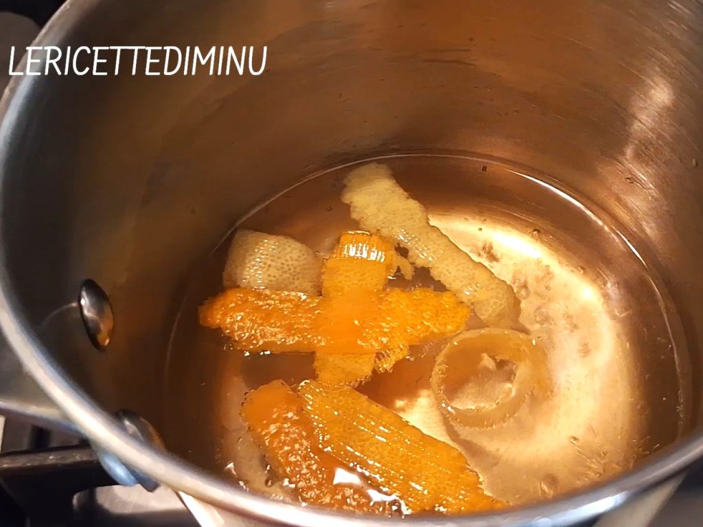 Bringen Sie es unter ständigem Rühren zum Kochen, dann schalten Sie die Hitze aus und lassen Sie die Schalen im Sirup, wenn möglich für einige Stunden, um das Aroma besser zu entfalten.
