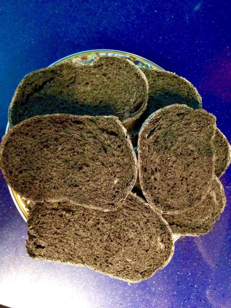 Brot mit Pflanzenkohle, ein sehr eindrucksvolles Brot wegen der Farbe und reich an vielen Eigenschaften, mit knuspriger Kruste und sehr weichem Inneren.