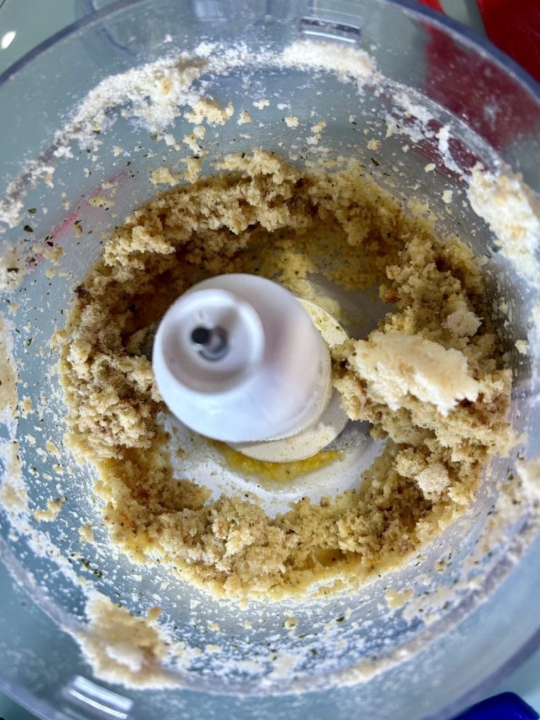 Die Milch sollte lauwarm hinzugefügt werden, um das alte Brot zu erweichen. Mein Tipp ist, sie in zwei Etappen hinzuzufügen, um den Teig nicht zu sehr aufzuweichen. Keine Sorge, wenn Sie zu viel Milch hinzugefügt haben: Sollten Sie nach der Zugabe aller Zutaten merken, dass der Teig zu weich ist, fügen Sie einfach mehr zerkleinertes Brot hinzu.