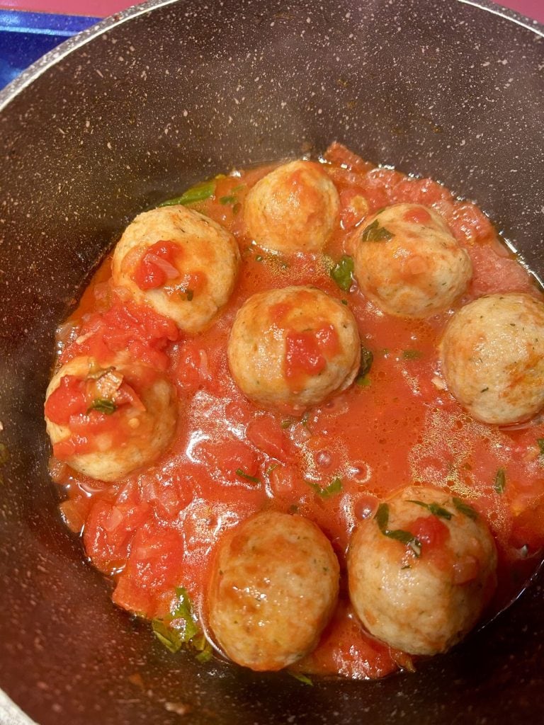 Nach der Zubereitung des Teigs können Sie entscheiden, wie Sie die Brotbällchen zubereiten möchten: Sie können sie frittieren, im Ofen zubereiten oder in Soße, wie ich es in diesem Rezept vorschlage.
