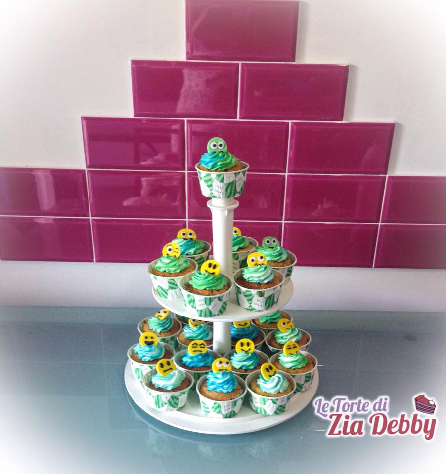 Cupcake mit Emoji, ich habe diese bunten und lustigen Cupcakes zur Feier der Erstkommunion von Flavio vorbereitet, für die wir bereits die Torte und die kekse dekoriert ebenfalls mit Emoji gesehen haben.