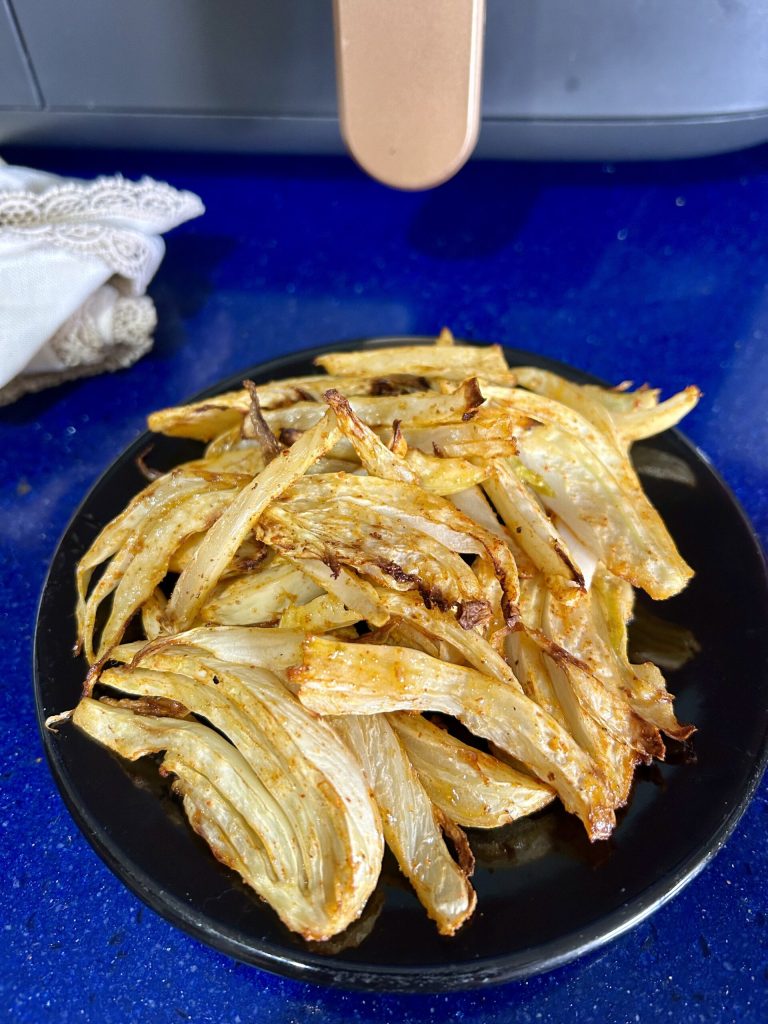 Der auf diese Weise zubereitete Fenchel kann als Beilage zu anderen Gerichten oder als Zutat für Vorspeisen und Aperitifs serviert werden. Dank seines kräftigen Geschmacks ist er perfekt als Appetitanreger. Ich empfehle, ihn in dünne Scheiben zu schneiden, um am Ende der Garzeit einen knusprigen Fenchel zu erhalten.
