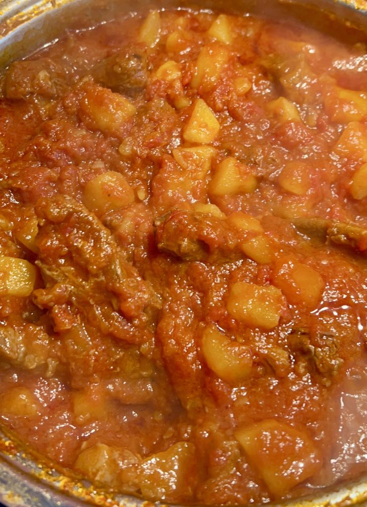 Der Gulasch mit Soße und Kartoffeln ist fertig, wenn das Fleisch sehr zart ist, leicht mit einer Gabel zu durchstechen, die Kartoffeln weich sind und die Soße gut reduziert ist und alle Zutaten umhüllt. Serviere ihn heiß, mit einer schönen Scheibe Brot zum Dippen.