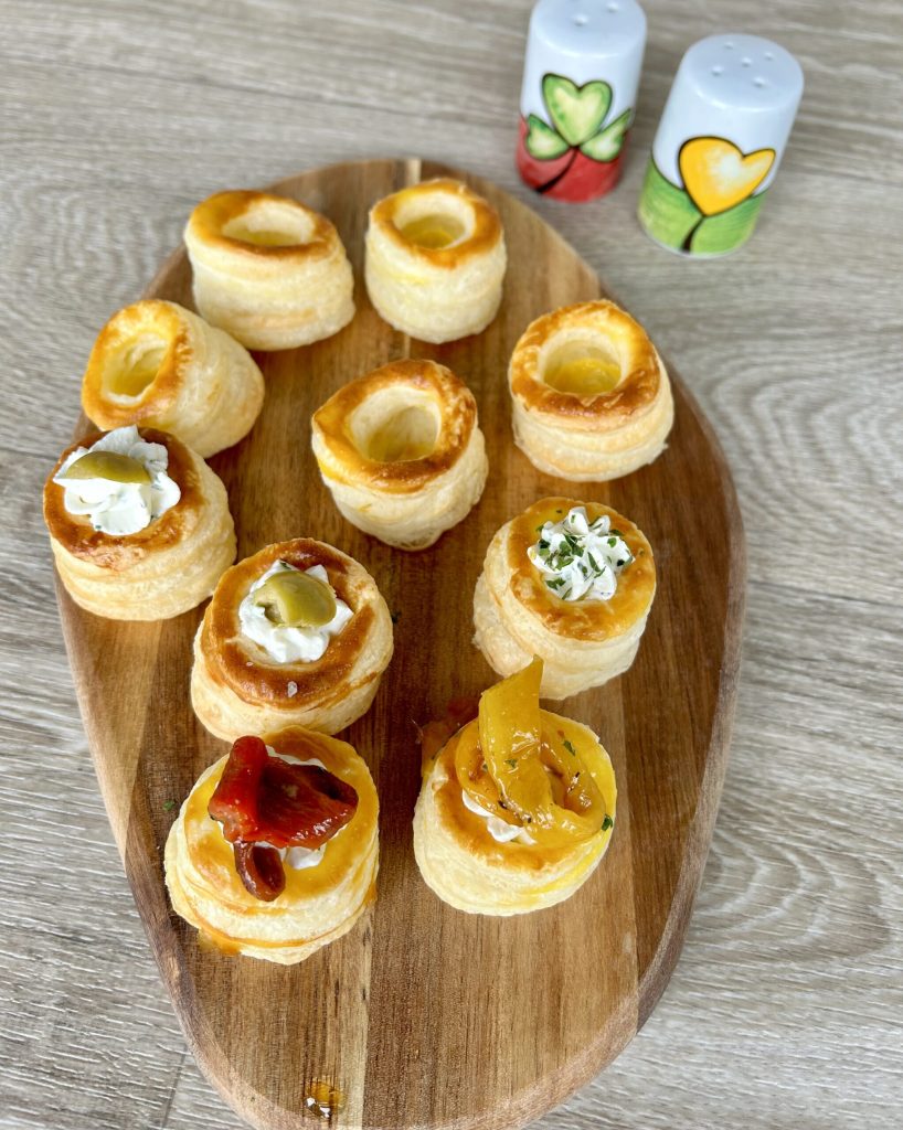 Wie bereits erwähnt, wird normalerweise empfohlen, die Blätterteigkörbchen mit herzhaften Cremes zu füllen, da sie ideal als Vorspeisen, Aperitifs und bei Buffets serviert werden können. Aber nichts hindert Sie daran, da die Basis neutral ist, sie mit süßen Cremes wie Haselnusscreme, Pistaziencreme, Vanillecreme usw. zu füllen und sie vielleicht mit Nusskrokant zu dekorieren, um auch eine hervorragende Zwischenmahlzeit für Kinder zu haben.