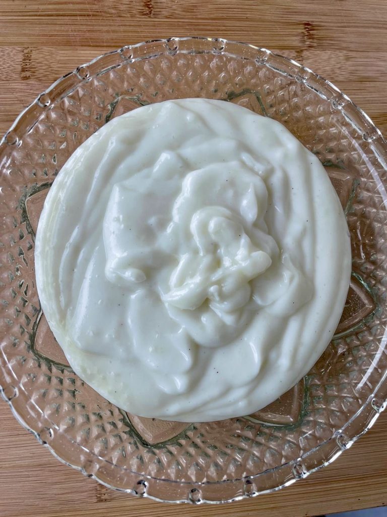 Wenn Sie sie am besten genießen möchten, denken Sie daran, sie während des Abkühlens immer mit Frischhaltefolie in direktem Kontakt abzudecken, um die Bildung einer Kruste auf der Oberfläche zu vermeiden.