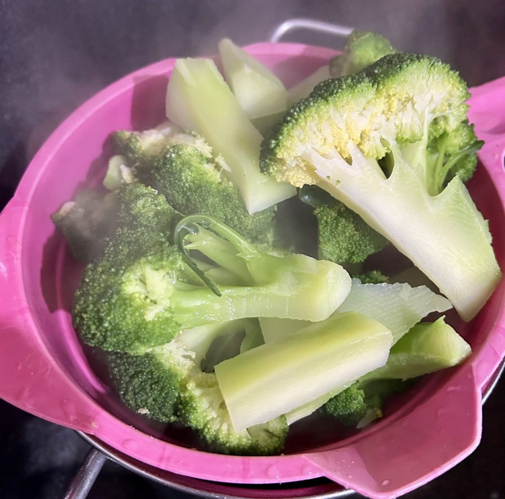 Die Brokkoli sollten nur leicht weich werden, aber knusprig bleiben. Gut abtropfen lassen.