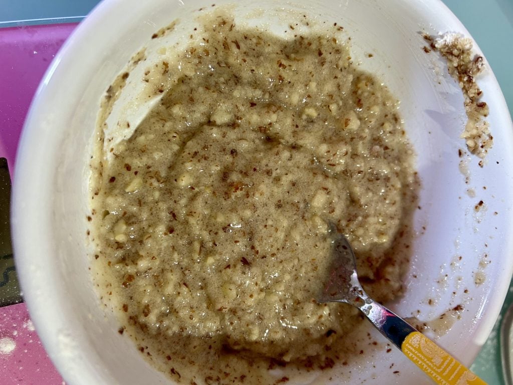 Die Glasurzutaten von Hand mit einer Gabel mischen, bis eine homogene Glasur entsteht.