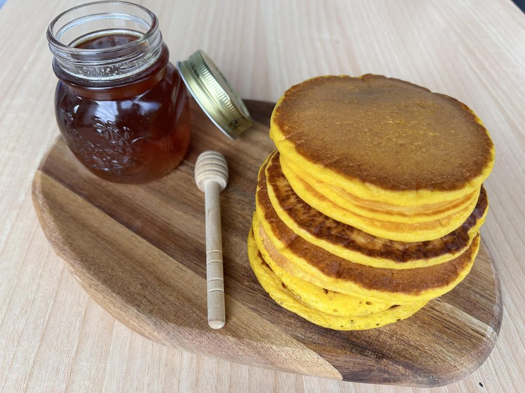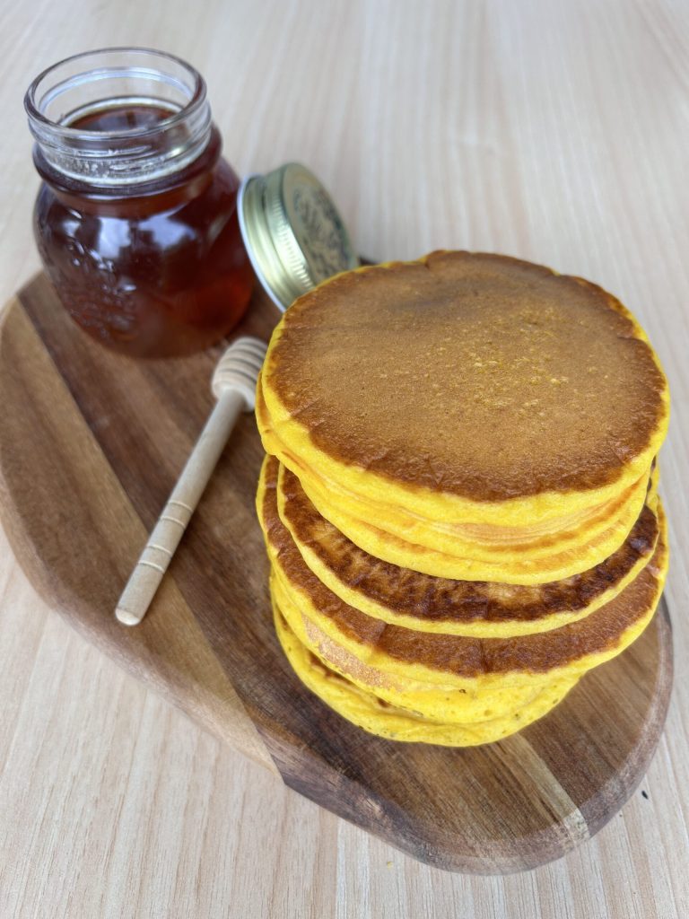 Kürbispfannkuchen, wie auch die klassischen Pfannkuchen, können sowohl süß als auch herzhaft sein, je nachdem, wie ihr sie konsumieren möchtet. Normalerweise werden sie mit Ahornsirup oder Honig serviert, können aber auch mit gesalzener Butter und Speck kombiniert werden. Ich genieße sie auch gerne nur mit frischen Früchten.
