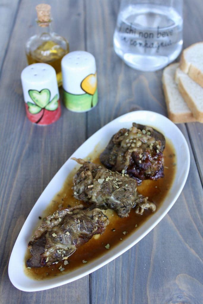 Wir entfernen die Leberstücke aus ihrem Netz, achten darauf, es nicht zu sehr zu beschädigen, und legen es beiseite. Mit einem glatten Messer beginnen wir, das Fleisch zu filetieren, indem wir es zur Hälfte durchschneiden, ohne es vollständig zu trennen. Dann öffnen wir die Enden und filetieren sie weiter mit dem Messer. Wir erhalten unregelmäßige Stücke, die ideal sind, um mit Salz, Pfeffer und gehacktem Lorbeer gewürzt zu werden. Wir rollen sie mit den Aromen im Inneren auf und wickeln sie wieder ins Netz.