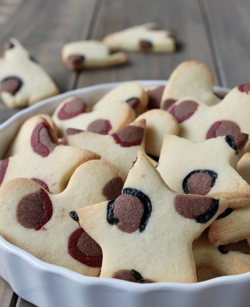Die Arbeit erfordert etwas Geduld, um die Flecken zu erzeugen, aber es ist einfacher, als es scheint. Das Backen ist sehr schnell (nur 10 Minuten!), und die Kekse halten sich hervorragend in Blechdosen für viele Tage.
