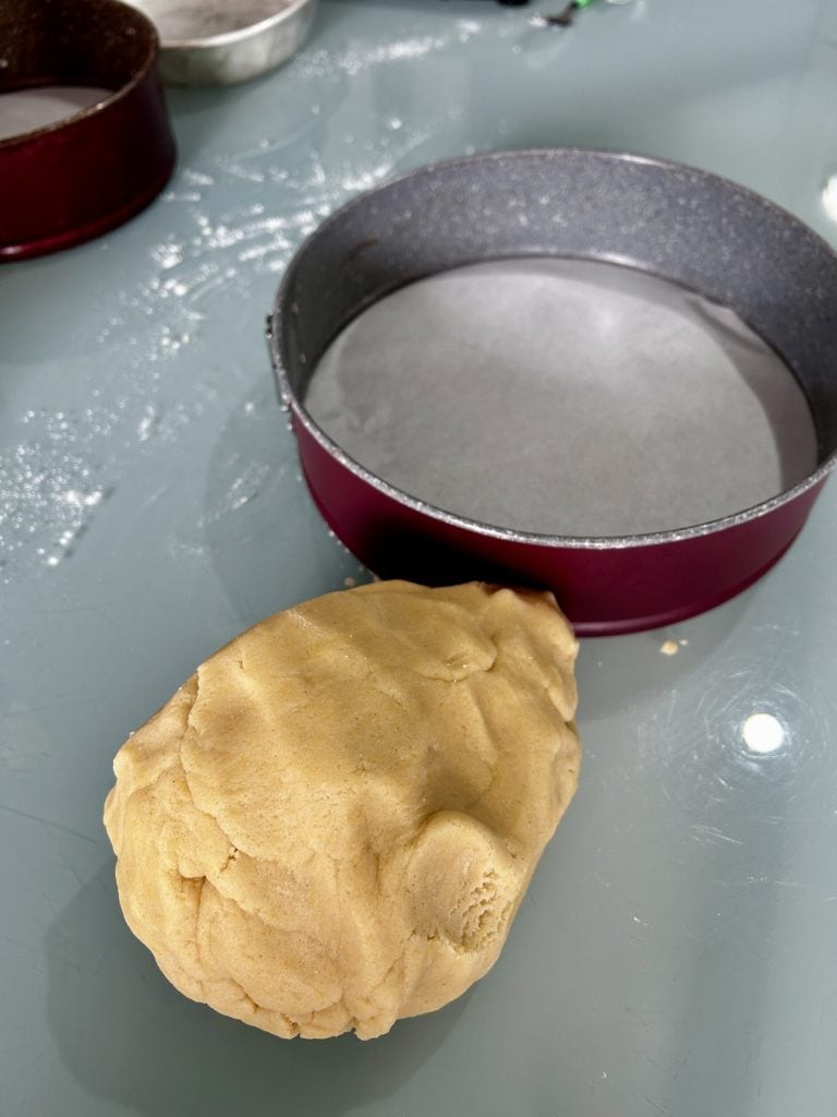 Der erste Schritt ist die Zubereitung des Mürbeteigs. Sie können ihn von Hand kneten oder die Küchenmaschine mit dem Flachrührer verwenden. Wenn Sie von Hand kneten, machen Sie einen Brunnen aus Mehl auf der Arbeitsfläche, geben Sie alle Zutaten hinein und lassen Sie sie nach und nach vom Mehl aufnehmen, indem Sie mit einer Gabel umrühren und dann weiter mit den Händen kneten, bis Sie einen homogenen Teigball haben.