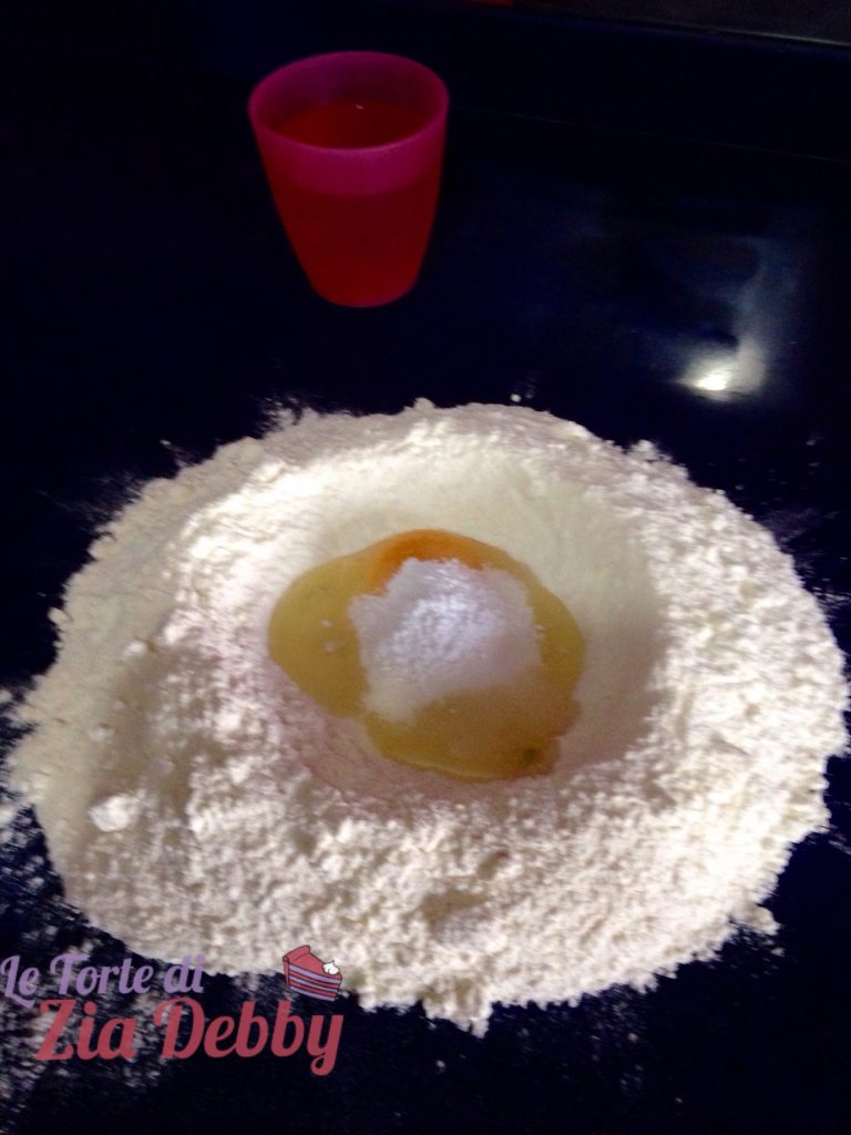 Das Mehl auf einer Arbeitsfläche anhäufen oder in die Küchenmaschine mit Blattaufsatz geben.