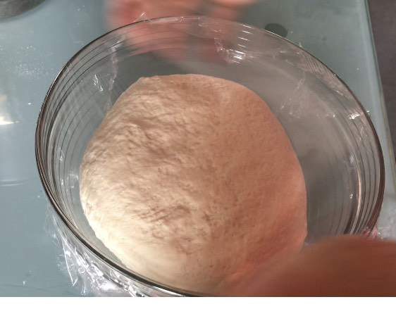 Nachdem Sie den Teig geknetet haben, falten Sie ihn mehrmals mit den Händen und formen Sie eine Kugel, die Sie eine Stunde lang abgedeckt mit Frischhaltefolie gehen lassen.