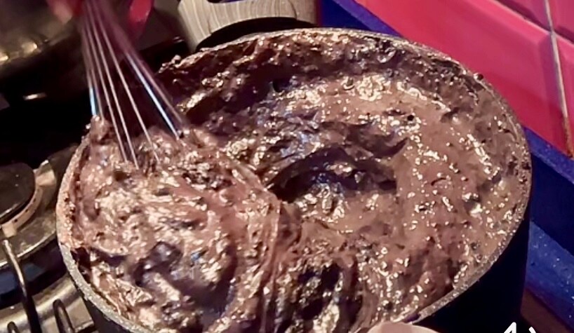 • Wenn diese schöne feste Glasur fertig ist und der Zucker die richtige Temperatur erreicht hat, fahren Sie fort, indem Sie die Glasur zum Sirup auf dem Herd hinzufügen. Nach etwa einer Minute löschen Sie das Feuer und rühren Sie gut mit einem Holzlöffel um. Warten Sie einen Moment, damit der Teig an Volumen gewinnt, wenn alle Arbeitsschritte korrekt ausgeführt wurden, werden Sie sehen, dass dies automatisch geschieht!