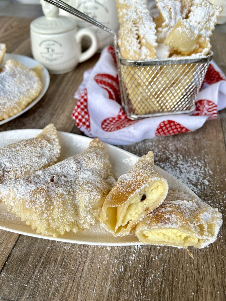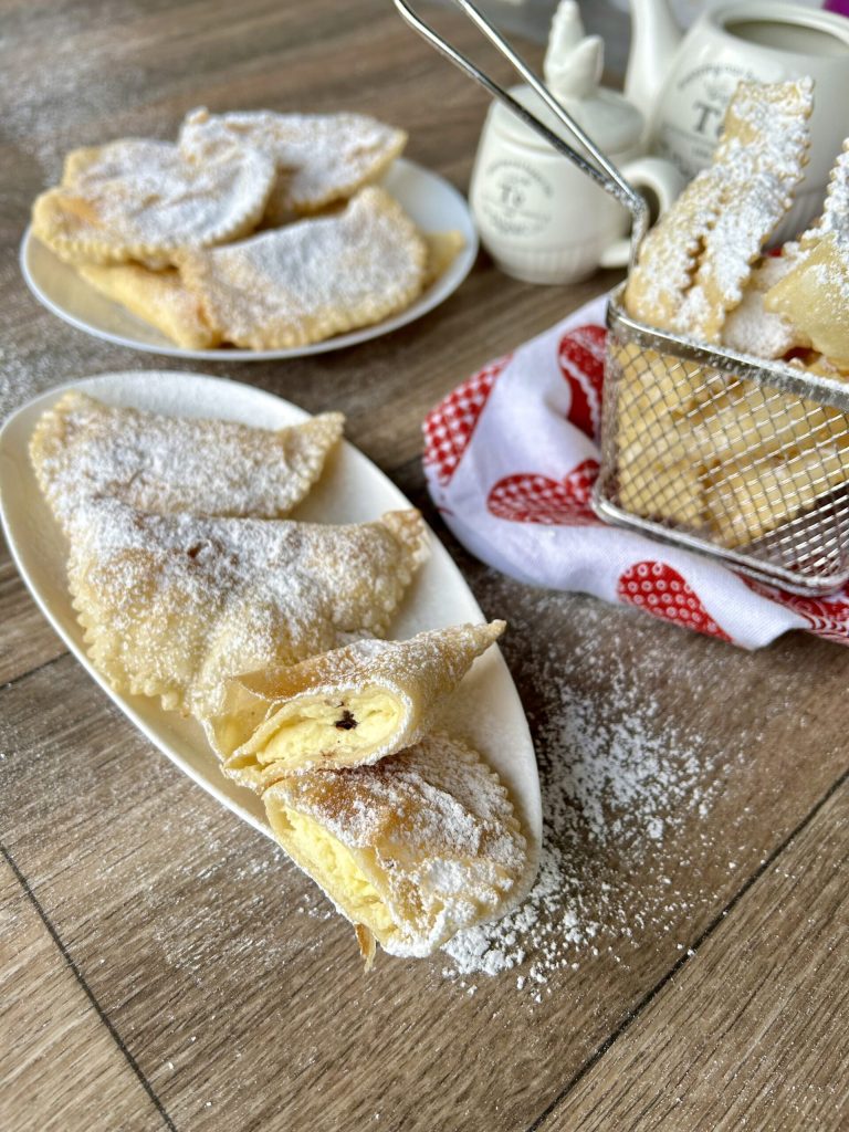 Süße Ravioli mit Ricotta, knusprige frittierte Täschchen, gefüllt mit Ricotta und Schokoladenstückchen, typisch in der Karnevalszeit, aber das ganze Jahr über sehr lecker.