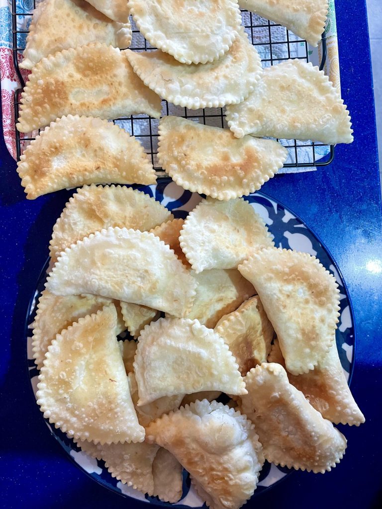 Das Küchenpapier sollte die Ravioli nicht berühren, die auf dem Gitter trocknen, um knusprig zu bleiben. Dann könnt ihr sie auf Servierplatten anrichten. Bevor ihr sie serviert, empfehle ich, sie mit etwas Puderzucker zu bestreuen.