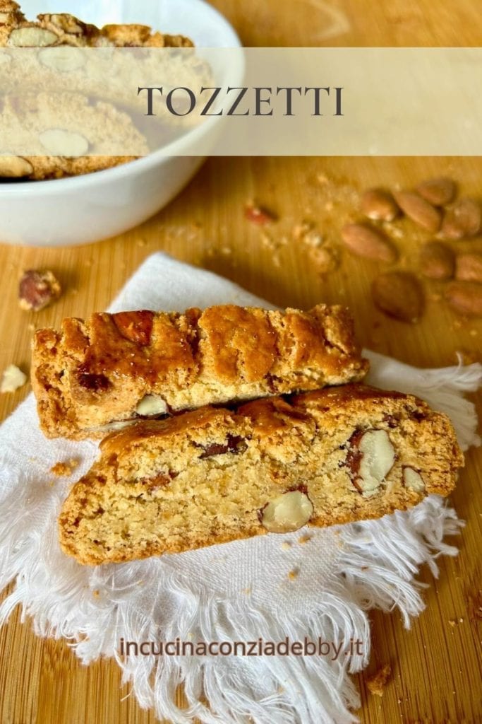 • Sobald sie goldbraun sind, nehmen Sie die Kekse aus dem Ofen und lassen sie etwa 10 Minuten abkühlen. Mit einem guten scharfen Brotmesser schneiden Sie die Tozzetti entschlossen auf dem Schneidebrett und legen sie zurück auf das Backblech. Wenn Sie alle geschnitten haben, geben Sie sie wieder in den immer noch heißen Ofen bei 180°C für etwa 5 Minuten, dann schalten Sie den Ofen aus und lassen sie weitere 5 Minuten darin. Jetzt sind Ihre fantastischen Kekse fertig. Ich kann mir vorstellen, dass Sie schon den fantastischen Geschmack kennen, denn es ist unmöglich, die Krümel nicht zu probieren, die beim Schneiden der Kekse natürlich entstehen 😍