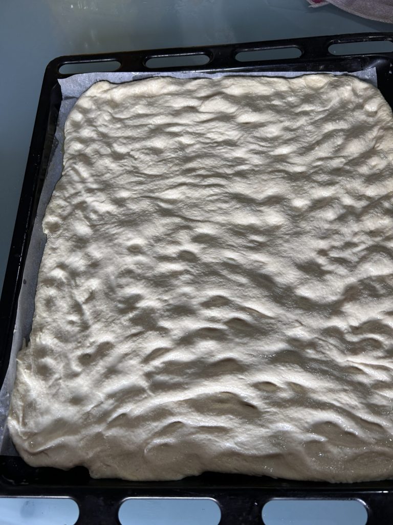 Die Zubereitung ist sehr einfach und sieht nur eine Gärung und eine kleine Ruhezeit auf dem Blech vor.