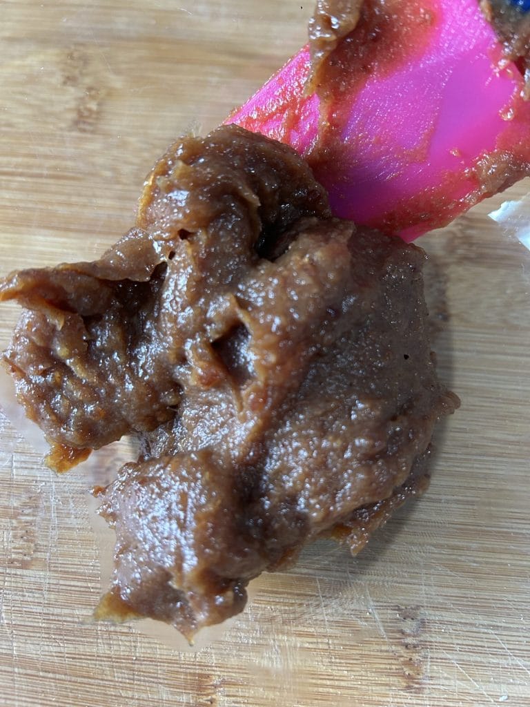 Um meine zuckerfreien Dattelkekse zuzubereiten, habe ich damit begonnen, die Datteln etwa 10 Minuten lang in Wasser einzuweichen, damit sie weich werden. Nachdem sie fertig waren, habe ich die Steine entfernt und sie zusammen mit etwa 100 ml lauwarmem Wasser püriert, um eine glatte und dicke Creme zu erhalten, ähnlich einer Dattelpaste.