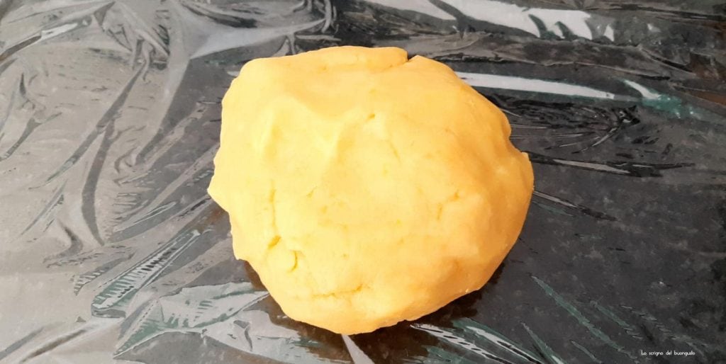 Anschließend die Eigelbe hinzufügen und ein paar Minuten lang kneten, bis ein homogener Teig entsteht.