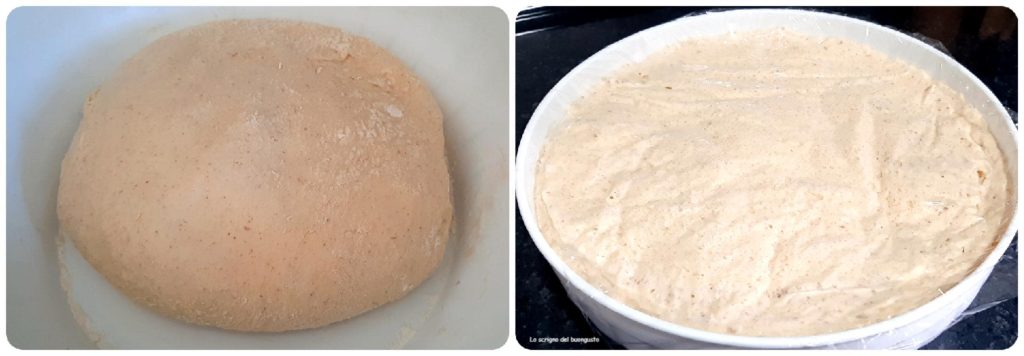 Anschließend die lauwarme Milch, das Salz und das restliche Mehl hinzufügen und den Teig fertigstellen, bis eine gut bearbeitete Masse entsteht.
