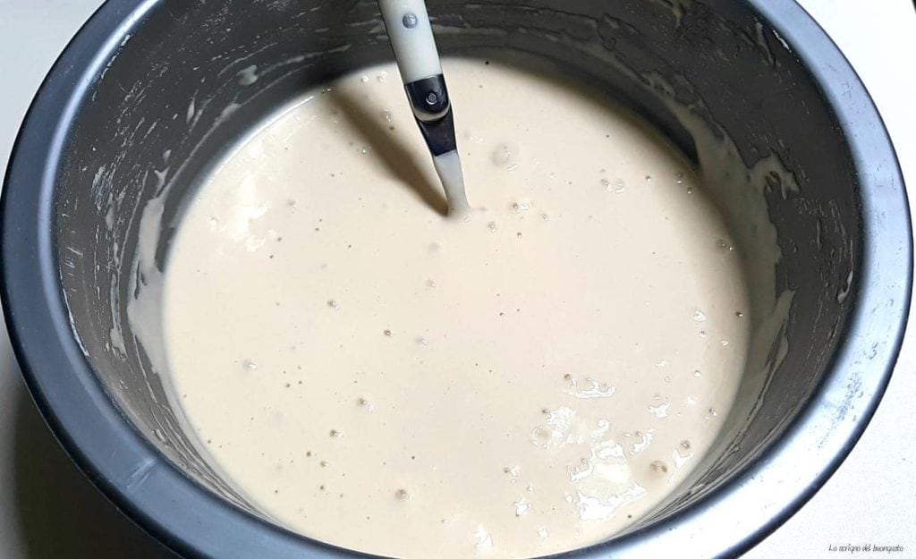 Mehl hinzufügen, bis eine dicke und gut vermischte Masse entsteht.