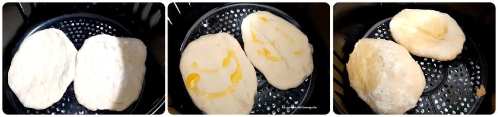 Sie blähen im Inneren auf, sind wirklich weich und im Gegensatz zu denen, die in Öl frittiert werden, bleiben diese auch am nächsten Tag gut und trocknen nicht aus, oder zumindest verlieren sie nicht ihre Knusprigkeit.