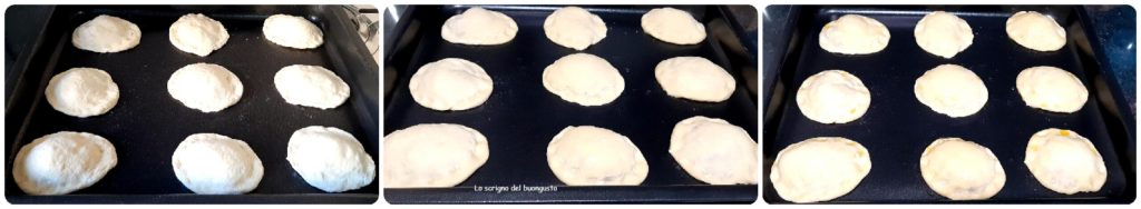 Kurz bevor ihr sie in den Ofen schiebt, die Bällchen mit der Mischung aus Wasser und Öl bestreichen, dann im vorgeheizten Ofen bei 250°C etwa 10–15 Minuten backen und dabei die Bräunung kontrollieren.