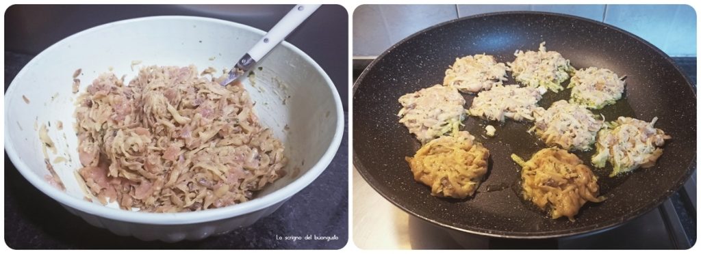 Eine Antihaft-Pfanne vorbereiten, das Öl hineingeben, erhitzen und mit den Händen die Puffer formen, in die Pfanne legen und bei mittlerer Hitze 4-5 Minuten pro Seite braten.