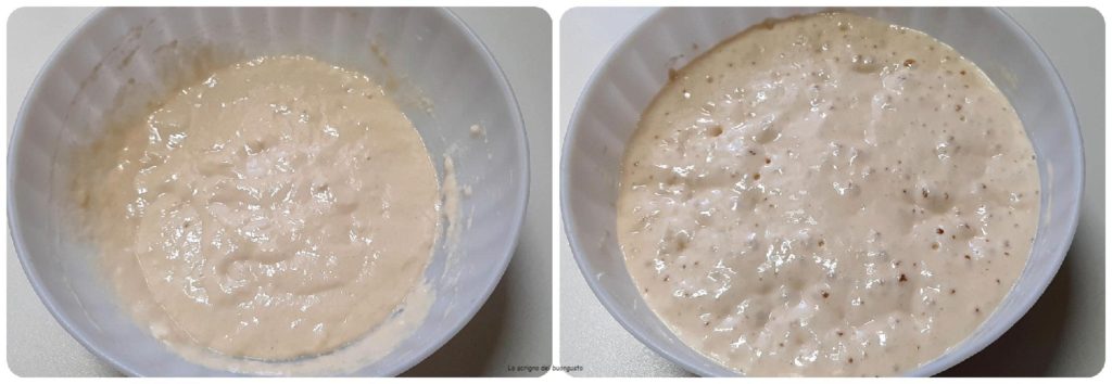 An diesem Punkt lassen wir unsere Colomba zugedeckt und an einem warmen Ort etwa 1 Stunde und bis zur Verdopplung gehen.