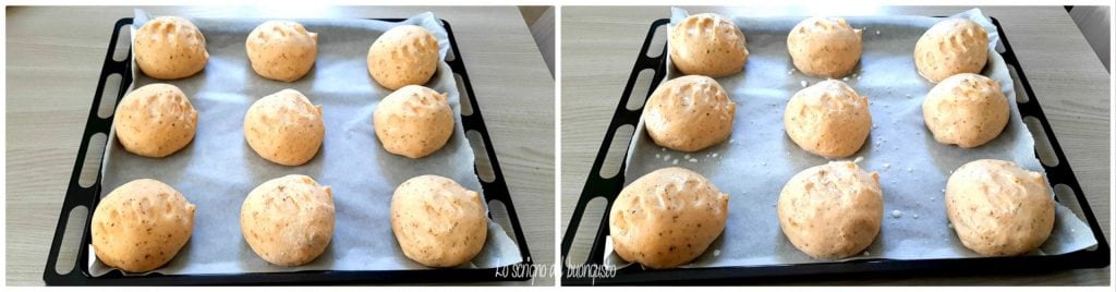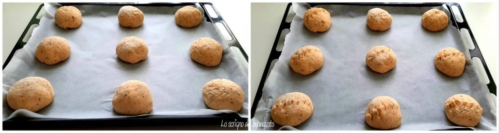 • und für 30-40 Minuten gehen lassen, dann die Brötchen mit Milch bestreichen und im vorgeheizten Ofen bei 220°C etwa 20 Minuten backen, die Garung überwachen.