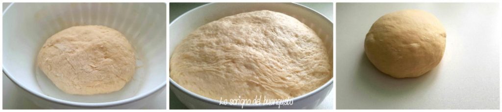 Den Teig in einer großen Schüssel gehen lassen und mindestens 2 Stunden oder bis zur Verdoppelung aufgehen lassen.