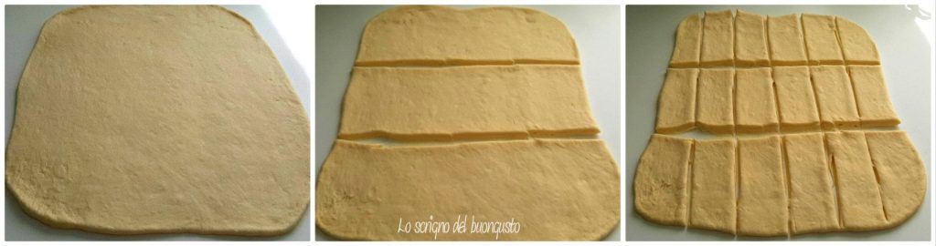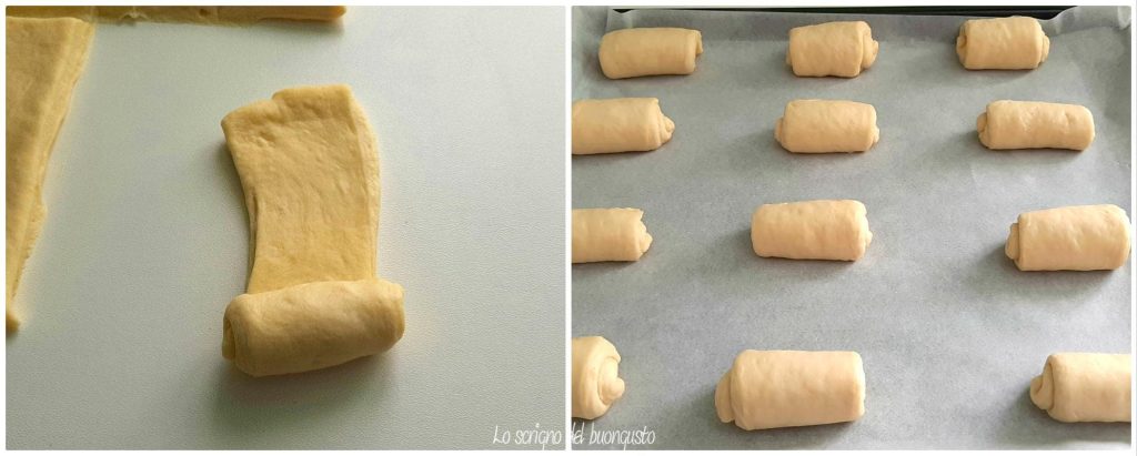 jeden Streifen leicht mit den Händen verlängern und auf sich selbst aufrollen, um unsere Brötchen zu erhalten.