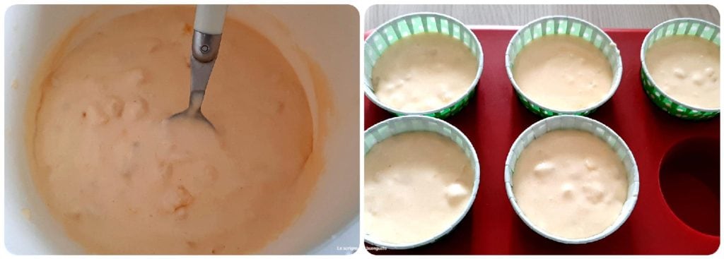 Den Teig in spezielle Muffinförmchen aufteilen, ich habe 5 Stück gemacht… den Ofen auf 180 °C vorheizen und 30-35 Minuten backen, dabei den Gargrad überprüfen.