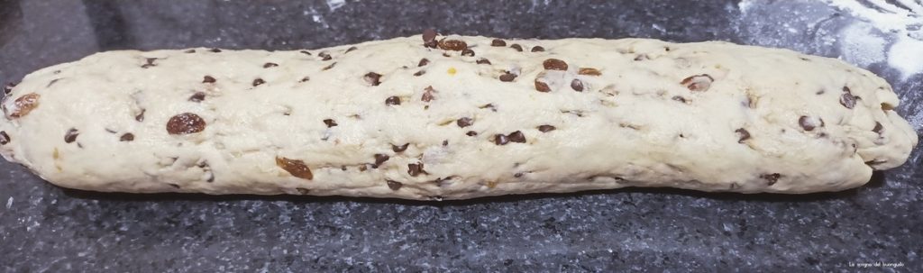 Die traditionelle Version enthält kandierte Früchte und eine größere Menge an Sultaninen, aber ich habe mich entschieden, die Rosinen zu reduzieren und die kandierten Früchte durch Schokolade zu ersetzen, um es an die Geschmäcker in meinem Zuhause anzupassen.