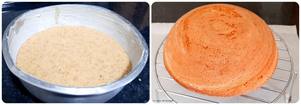 • Bereiten Sie die Form für den Parrozzo gut gebuttert und bemehlt (2 Mal) vor, lassen Sie sie einige Minuten im Gefrierschrank abkühlen, dann die Masse in die Parrozzo-Form gießen und im vorgeheizten Backofen bei 170°C etwa 1 Stunde backen, aber die Backzeit überprüfen.