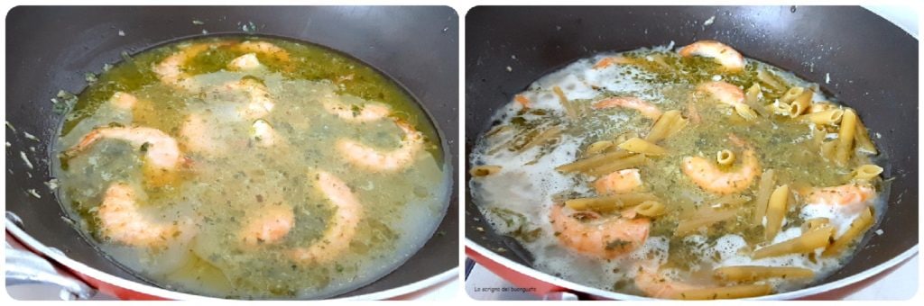 Zubereitung der Risotto-Pasta mit Garnelen