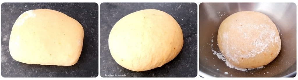 … dann einen Laib formen und in eine große Schüssel zum Aufgehen für ein paar Stunden und bis zur Verdopplung legen.