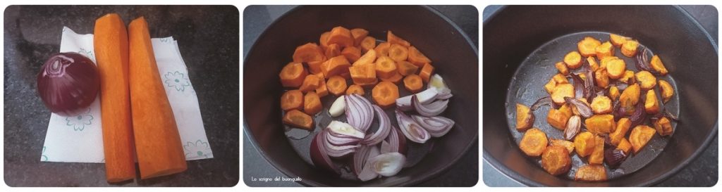 Die Creme entsteht aus der Kombination von Karotten und Zwiebeln, die langsam im Ofen gegart werden, bis sie weich, karamellisiert und intensiv aromatisch sind.